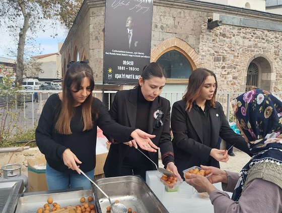 İyi Parti Uşak İl Başkanı Ayşegül Sözver Obalı ve bayan arkadaşları tarafından bizzat dökülüp dağıtılan lokmalar,