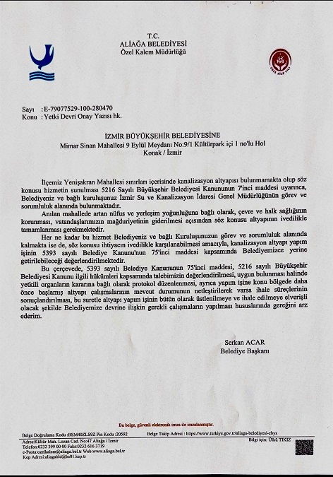 olarak Aliağa Belediyesi olarak üstlenmek için yetkinin Aliağa